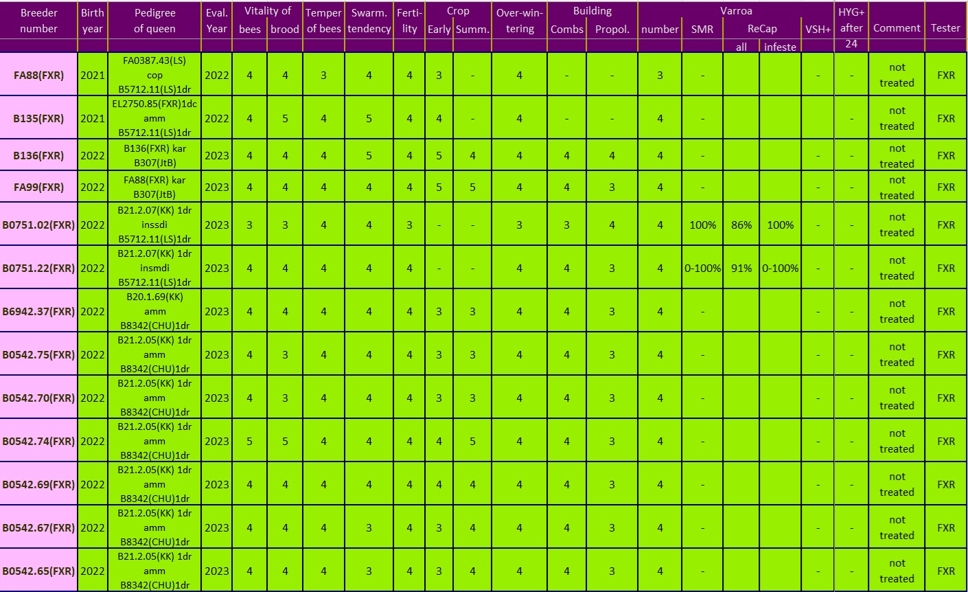 Supplied drones by 36 sister colonies, bred by Georg Gindhart (DE) and Franz Robeller (DE).